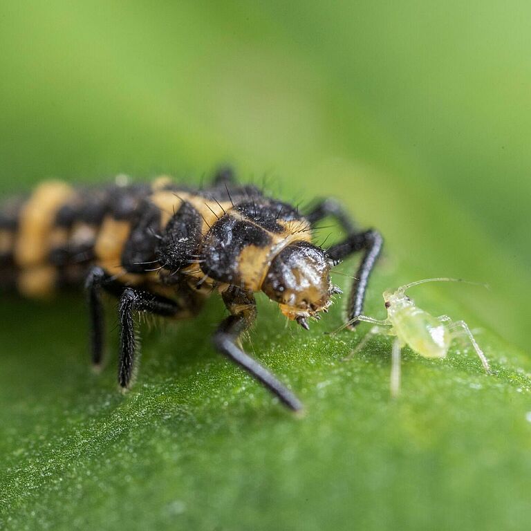 Predatory insects actively hunt and consume other insects and mites, often considered pests. Ladybugs, lacewings, predatory bugs, among others are natural enemies of various agricultural pests and play a vital role in biological pest control.