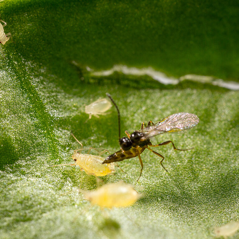 The parasitic wasp Aphidius ervi is available in a bottle (Ervipar).