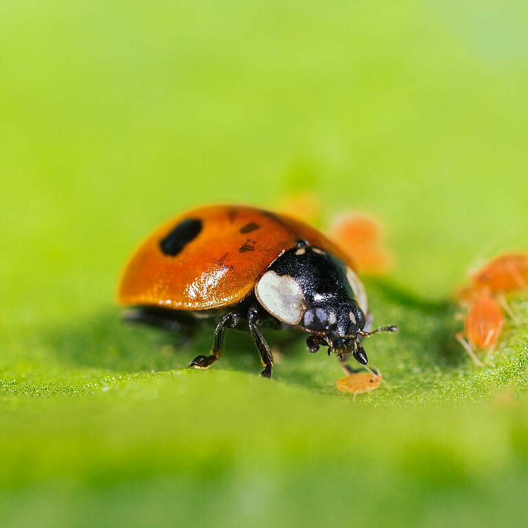 The predatory beetle Adalia bipunctata is available in a cotton bag (Aphidalia).