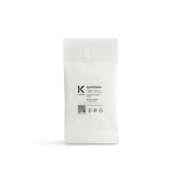 Adalia bipunctata feeds on all aphid species, but the product Aphidalia is especially designed for the control of aphids in trees.