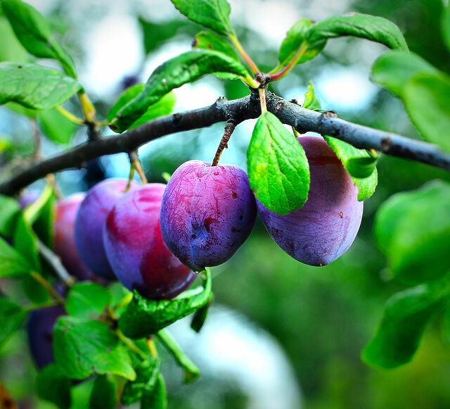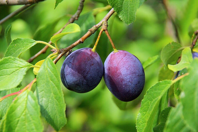 The plum is a drupe, so its firm and juicy flesh contains one single, hard seed. The plum is usually not too big (between 1-3 inch diameter) and its shape is globose or more oval. The plum’s skin is soft with a natural wax layer.