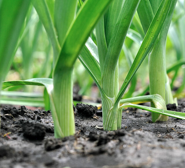The vegetable leek is a cultivar of Allium ampeloprasum, the broadleaf wild leek. In the past, many different scientific names were used to identify various species of leek, but now they are all classified as cultivars of Allium ampeloprasum. The part of the plant that can be eaten is at times erroneously called a stem or stalk. This part is actually a bundle of leaf sheaths. This bundle is blanched by putting soil around it (so-called ‘trenching’). The plant is usually sold as a small seedling and planted in a greenhouse. Later on, as weather permits, the leek is planted outside in the soil. Once outside, the plant is rather hardy and many varieties can be left in the soil during winter and harvested when there is a need for them.