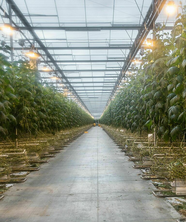 Together with Stefan Wubben, Kees Hendriks runs a farm covering over six hectares along Hoefslag road in the Dutch village of Pijnacker. Built in 2011, the farm has two sections. Hendriks grows high-wire (two crops per year) under high-intensity lighting (190 micromol). He sells his cucumbers to some major retailers in the Netherlands and occasionally to customers in Germany.