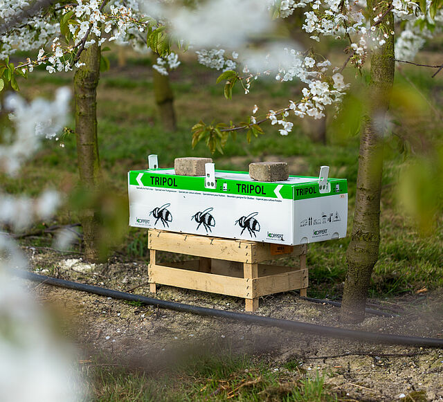 ‘Pesticides are bad for beneficial insects and anything you can do to make it more sustainable is a good thing,’ Alfred adds. Koppert’s Tripol hives were introduced into the apple and pear orchards six years ago when Alfred, who has been a fruit grower for 35 years, noticed that the blossoms were not pollinated optimally by the honeybees present at the time. ‘Bumblebees are more active than honeybees at lower temperatures, and we have found that a combination of honeybees and bumblebees is a big improvement.’ Alfred uses two Tripol hives per hectare, starting with the pear orchard, then moving them to the apple orchard in early spring.