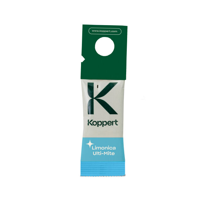 The dosage of Limonica Ulti-Mite depends on climate, crop and pest density and should always be adjusted to the particular situation. Start introduction preventively or as soon as the first pest mites are detected in the crop. Use at least 3,000 sachets per ha and hang them evenly spaced in the crop. Release should be repeated after 4 weeks if the pest is not controlled. Consult a Koppert advisor or a recognized distributor of Koppert products for advice on the best strategy for your situation.