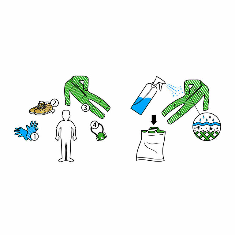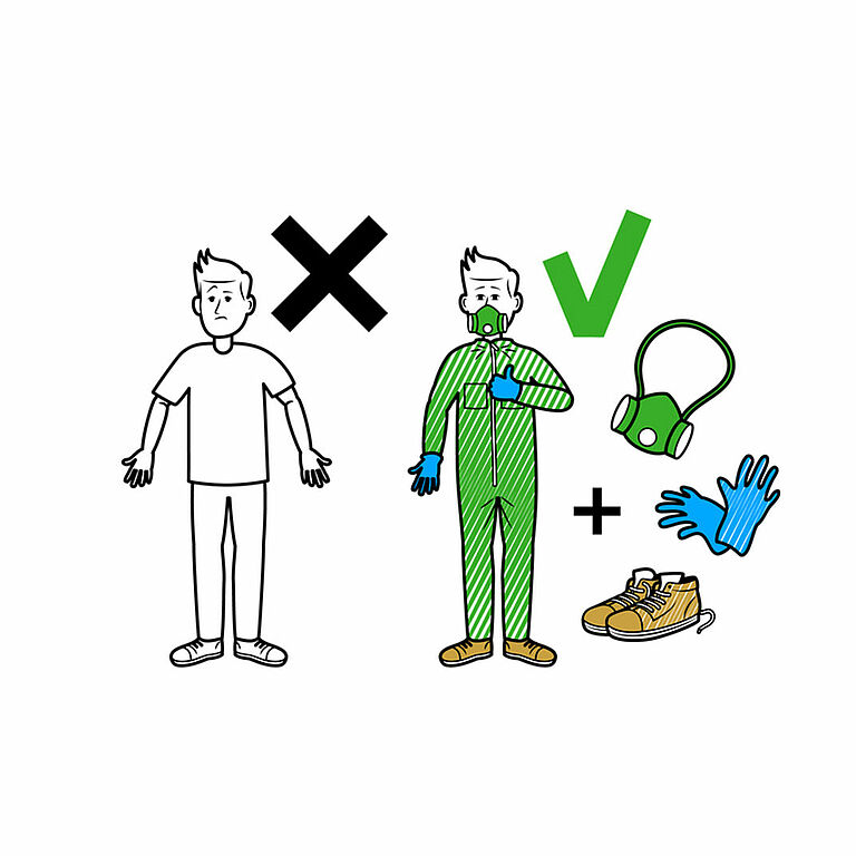 If there is a risk of exposure via your skin, we recommend that you wear protective clothing that covers your arms and legs (e.g. a disposable overall). We also advise you to cover your hands by wearing gloves.