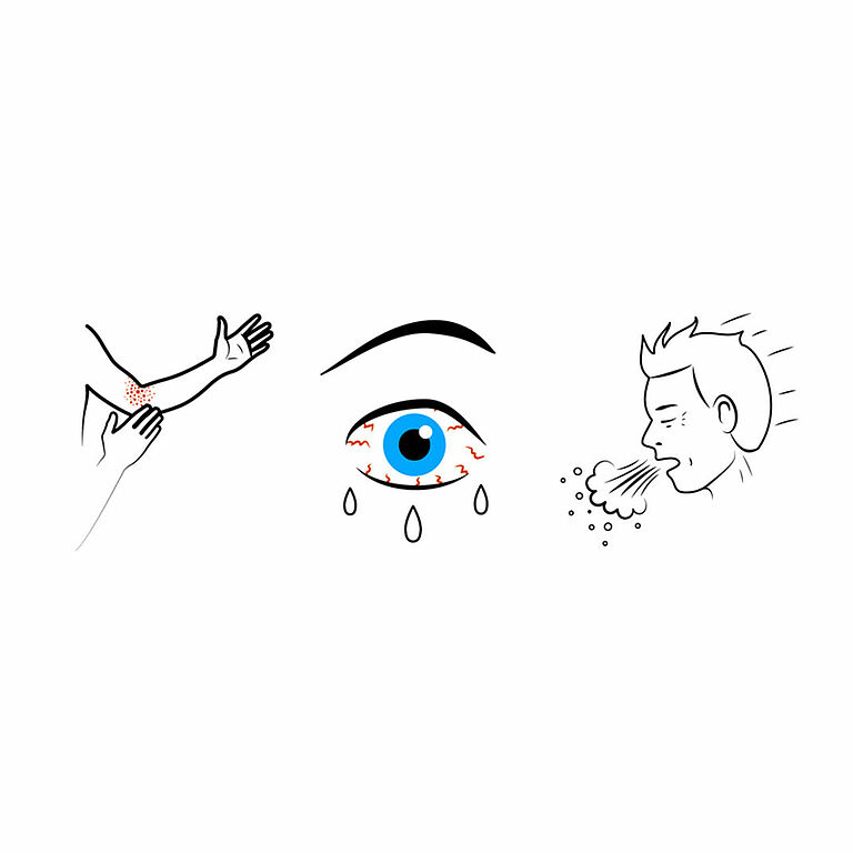 However, if you do come into contact with substances in the products mentioned above and you turn out to be allergic, you may experience symptoms relating to your skin (such as red, itchy skin or allergic eczema), nose (such as sneezing, runny nose, or an itchy nose), or eyes (such as itchy or watery eyes).