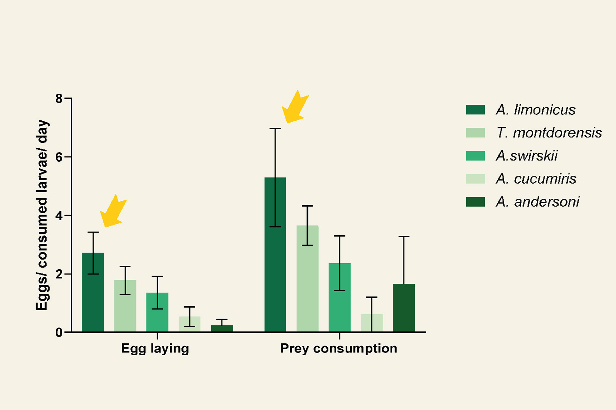 A. limonicus egg laying and predation capacity on T. parvispinus larvae