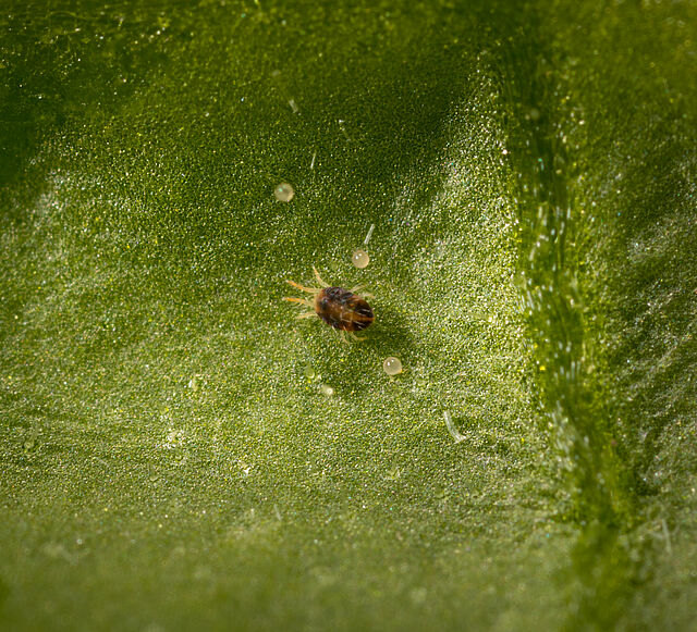 Plant-feeding mites, such as spider mites, are tiny arachnids that pierce plant cells and suck out their contents, causing damage to leaves, flowers and fruits.